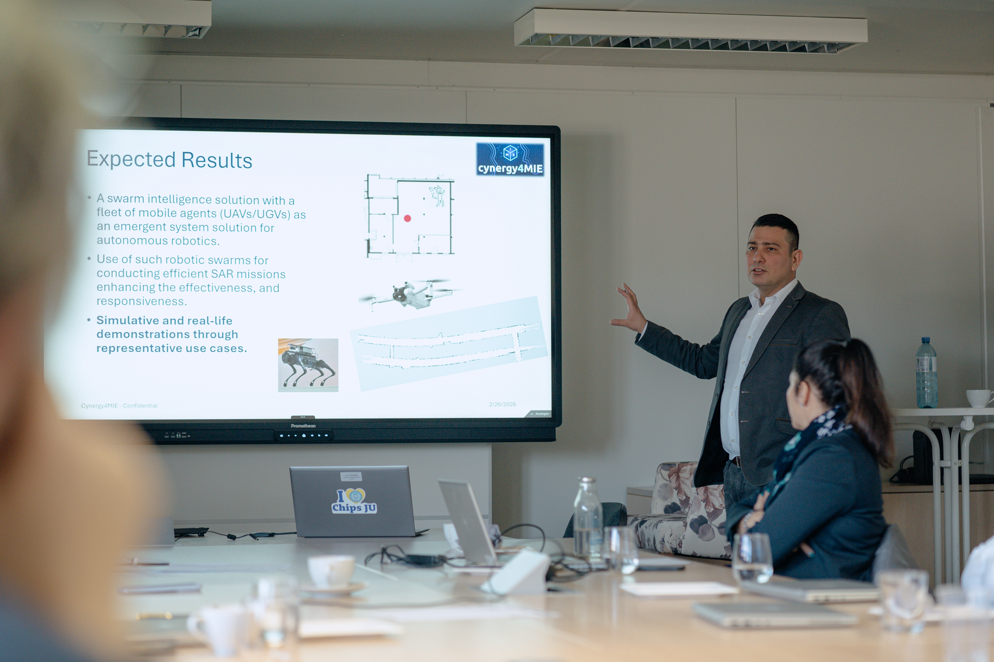 Cynergy4MIE project aims to develop a swarm intelligent solution with a fleet of mobile agents (UAVs/UGVs) as an emergent system solution for autonomous robotics. These robotic swarms will be used for conducting efficient SAR missions, enhancing the effectiveness and responsiveness.
